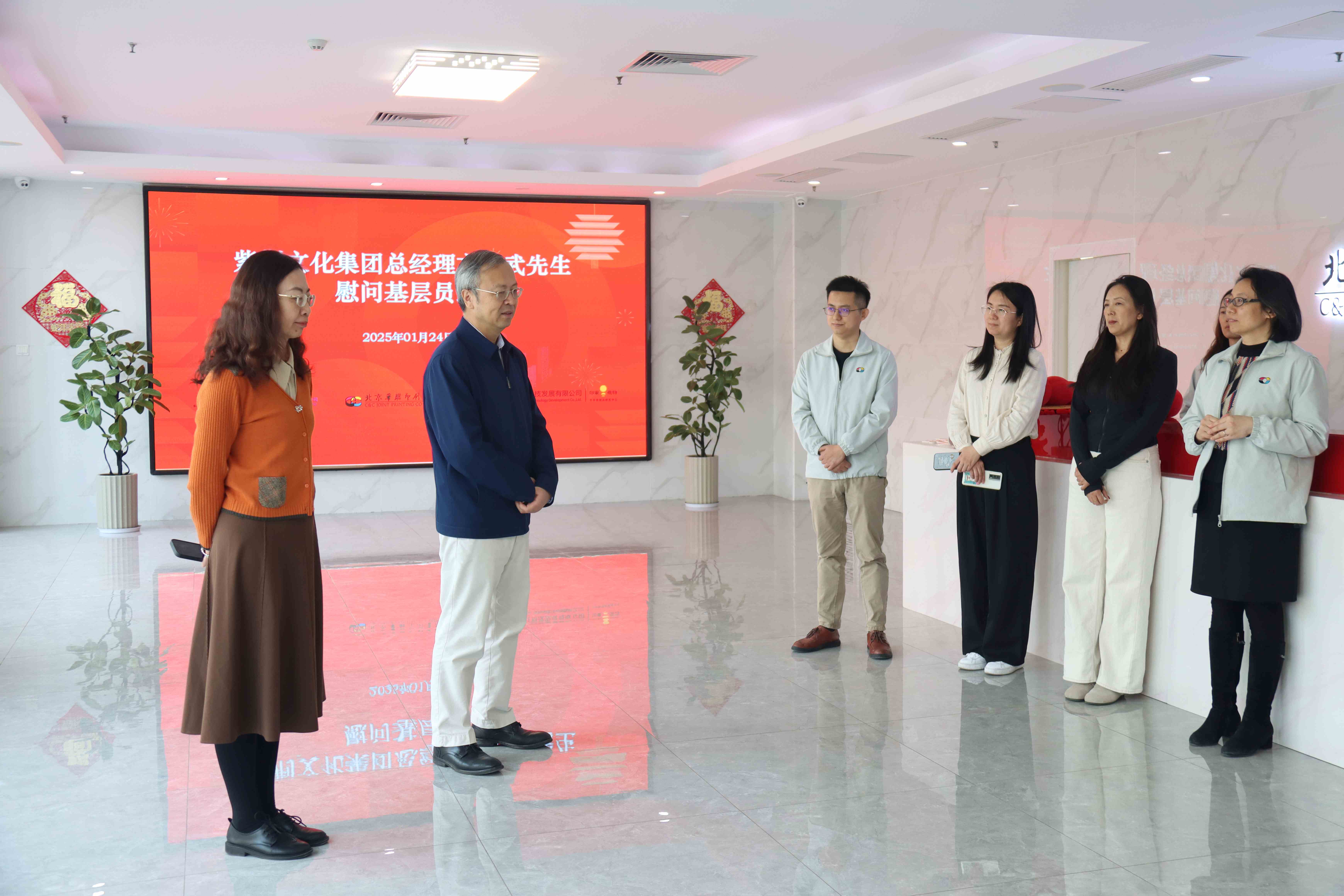 2025年1月24日上午,紫荆文化集团总经理文宏武亲临北京华联印刷有限公司,开展新春慰问活动,为基层员工送上温暖和祝福,并深入生产车间,了解业务和生产情况。