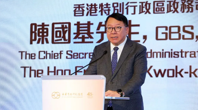 香港特别行政区政务司司长陈国基先生在致辞中高度赞扬了中华商务45年来为香港印刷业和文化传播作出的卓越贡献。陈国基司长指出,国家高度重视文化事业和文化产业的全面发展,特区政府正积极配合国家政策,加快将香港建设成“十四五”规划下的中外文化艺术交流中心。他强调,印刷和出版业作为香港第三大创意产业,在特区政府文创产业发展处的支持下,已成为文化艺术创意内容的重要媒介和分享平台,并服务社会民生。陈国基司长特别提到,为推动行业升级,政府正致力推广由香港印刷界主导的粤港澳大湾区首个印刷团体标准——“印刷色彩控制方法”(CTV),目标是使其成为国内主流并扩展至全球应用,巩固国家印刷强国地位。他赞扬中华商务长期致力于印刷技术研发与应用,在CTV标准的推广中贡献卓越。四十五年来,中华商务为教育、金融、工商等多个行业提供多元化书籍、包装及安全产品与服务,已发展成面向世界的先进印刷企业,并长期担任特区护照承印商,其卓越技术助力香港成为全球最早推出电子护照的地区之一。